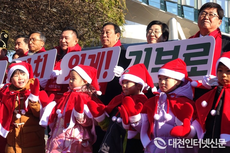 1일 시청 광장에서 ‘희망 2024 나눔 캠페인’ 출범식을 열고 사랑의 온도탑을 제막했다. [사진-대전인터넷신문]
