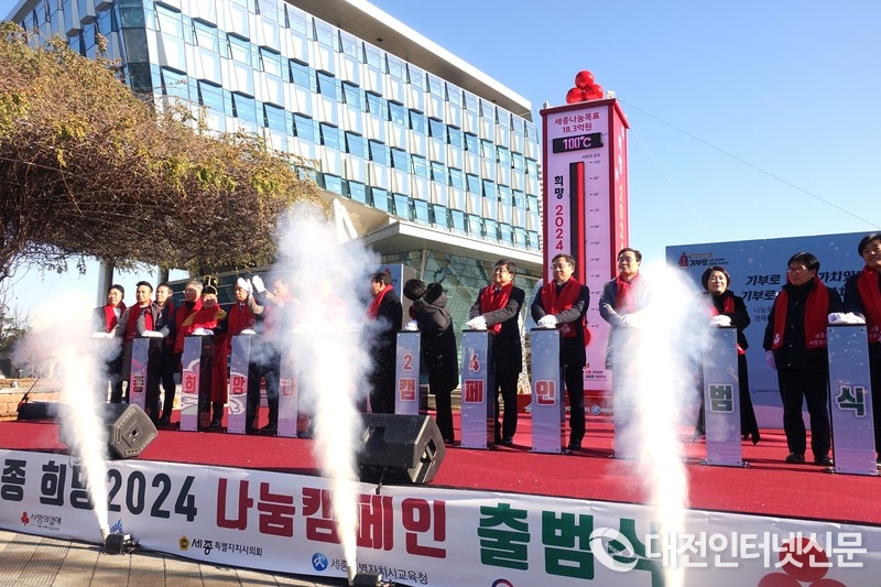 [대전인터넷신문=세종/최대열기자] 세종특별자치시(시장 최민호)와 세종 사회복지공동모금회(회장 박상혁) 는 1일 시청 광장에서 ‘희망 2024 나눔 캠페인’ 출범식을 열고 사랑의 온도탑을 제막했다.