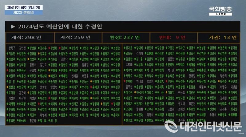 이외에도 정부안에 반영됐던 행정수도 완성을 위한 ‘국회세종의사당 건립’ 부지매입비 350억 원과 대통령 공약사항인 ‘대통령 제2집무실’ 건립비 10억 원 등 주요 계속 사업과 내년도 신규사업으로 반영된 세종운전면허시험장 건립비 1억 원 및 금강횡단교량 추가 건설 사업비 1억 원 등도 감액 없이 원안 가결됐다.