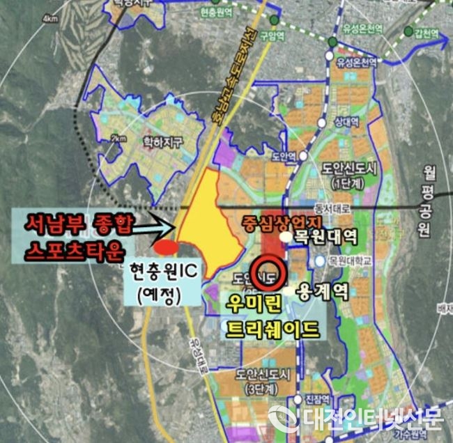 충청권 하계세계대학 경기의 개막식과 축구경기가 열릴 예정인 대전 서남부 종합스포츠타운 부지 76만 3,000㎡가 21일 중앙도시계획위원회 재심의에서 조건부로 통과되면서 대전시 2027년 세계대학경기대회 준비가 추진력을 확보하게 됐다.