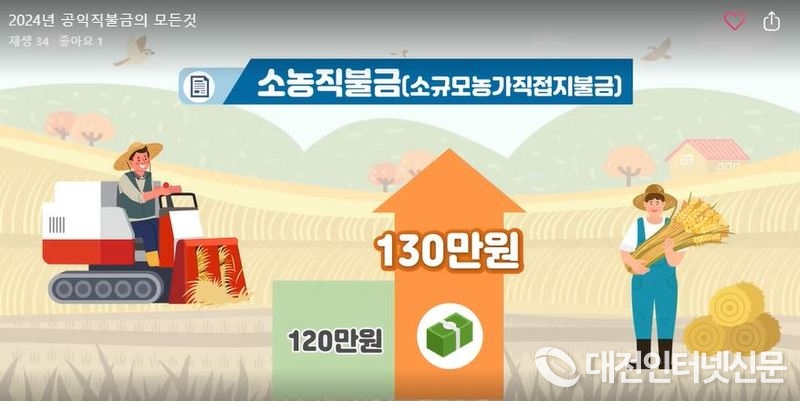 특히 올해 소농직불금 지급단가가 가구당 120만 원에서 130만 원으로 인상되면서 농업인 소득안정에 보탬이 될 것으로 기대된다.