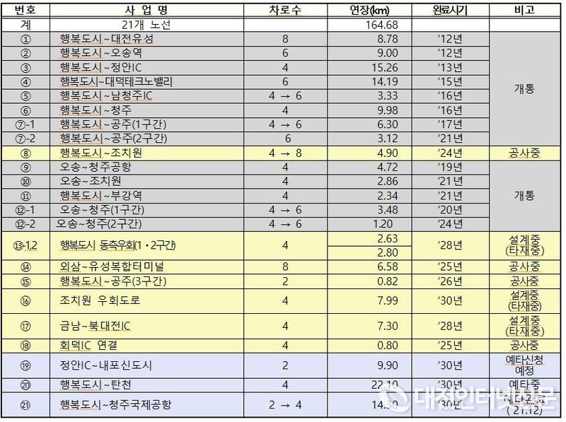 광역도로 조성 추진현황 [출처-행복청]