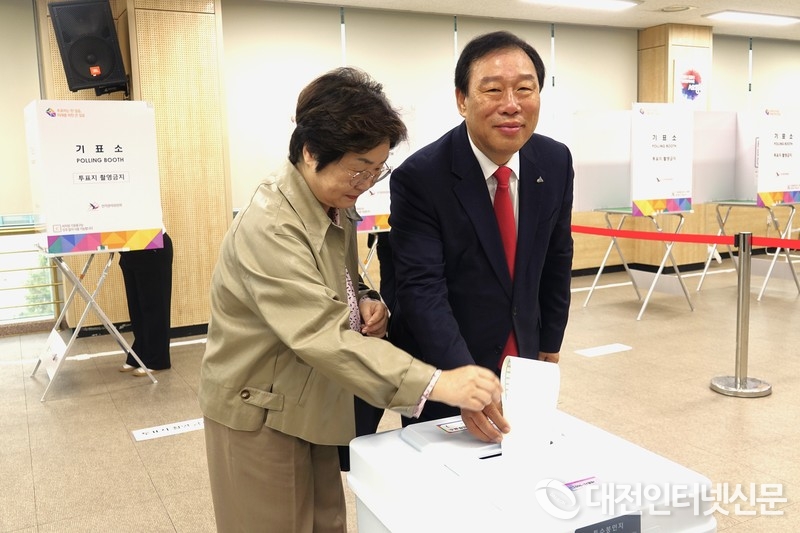 [대전인터넷신문=세종/최대열 기자] 최민호 세종시장은 전광희 여사와 함께 5일 오전 07시 50분 조치원읍사무소 3층 대회의실에 마련된 사전투표소에서 소중한 한 표를 행사했다.