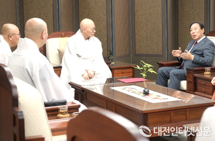 [대전인터넷신문=세종/최대열기자] 최민호 세종특별자치시장은 10일 대한불교 조계종 총무원장(진우 스님)을 예방하고 환담을 나눴다.