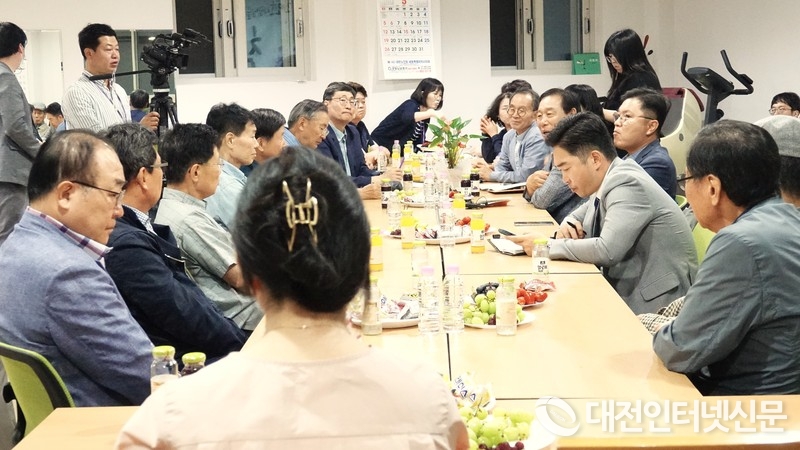 고운동 가락마을 10단지 경로당에서 ‘시장과 함께하는 1박 2일’ 시즌2 행보를 이어가는 최민호 세종시장과 주민대표. [사진-대전인터넷신문]