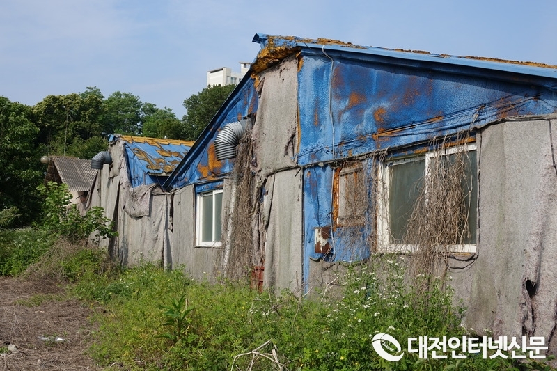 고운동과 인접한 돈사가 수년째 방치되면서 도시미관을 크게 해치고 있지만 뚜렷한 대책 없이 방치되고 있다. [사진-대전인터넷신문]