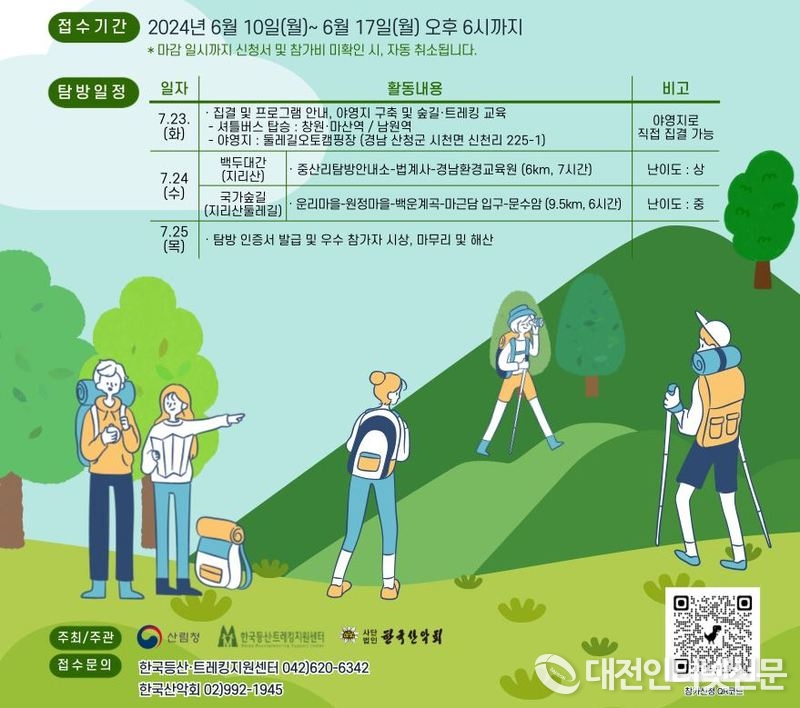 [대전인터넷신문=대전/이향순 기자] 산림청은 오는 7월 23일부터 25일까지 진행되는 ‘청소년 산림생태탐방’의 참가자를 모집한다고 밝혔다.