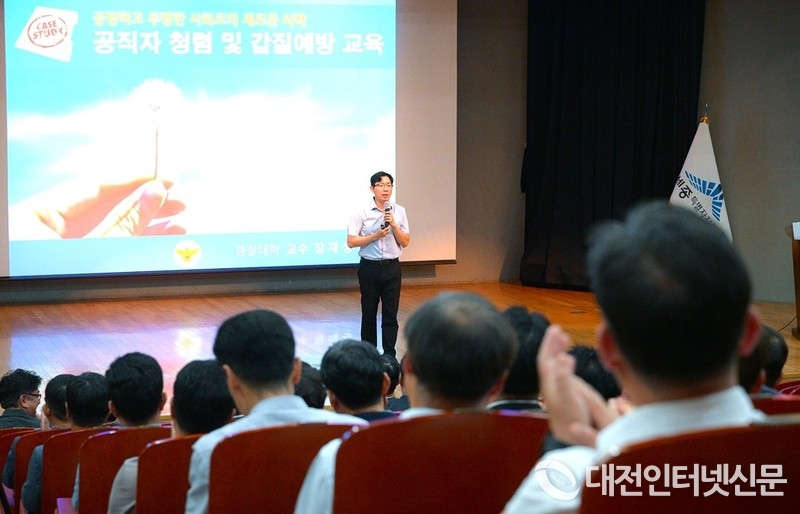 국민권익위원회 청렴교육강사 장재성 교수가 ‘청탁금지법, 행동강령의 직무상 갑질금지’ 등을 주제로 사례 중심의 강의를 통해 청렴에 대한 이해도를 높였다. [사진-세종시]
