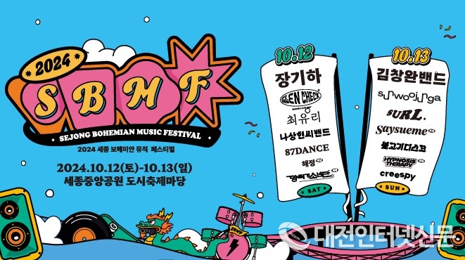 한편 2024 세종보헤미안뮤직페스티벌은 오는 10월 12일부터 10월 13일까지 세종중앙공원 도시축제마당에서 진행되며, 세종음악창작소 누리집과 공식 SNS에서 확인 가능하다.