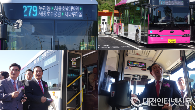 [대전인터넷신문=세종/최대열 기자] 가입 회원 수 6만 명을 넘긴 ’이응 패스‘ 정착과 세종시 남북을 왕복 운행하는 279번 신설 노선 시승식이 9월 30일 오전 9시 세종시 누리 동 전기충전소에서 최민호 세종시장, 김효숙 세종시의회 의원을 비롯한 관계자가 참석한 가운데 개최됐다.
