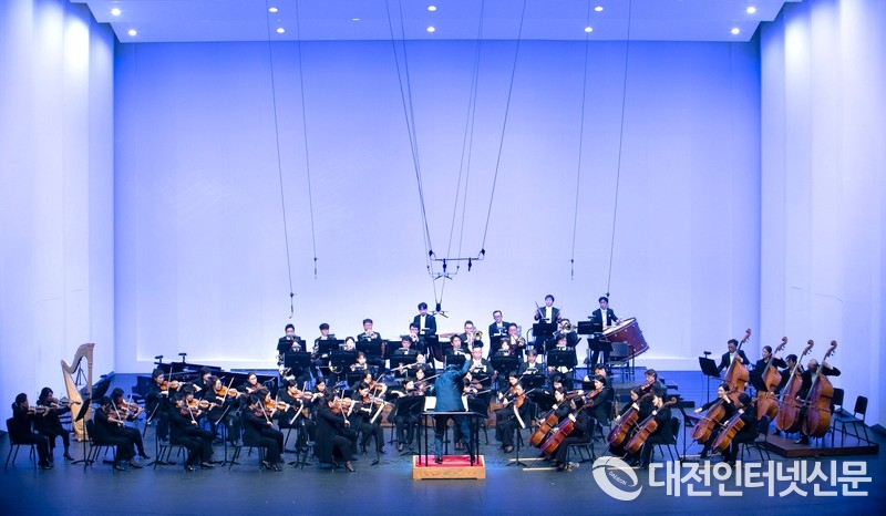 지난 30일 대전예술의전당 아트홀에서 열린 '제14회 동서커피클래식'에서 공주시충남교향악단(지휘 정나라)이 연주하고 있다. [사진-동서식품]