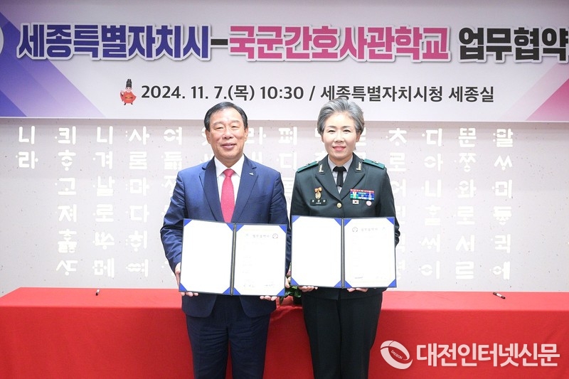 [대전인터넷신문=세종/권혁선 기자] 세종시와 국군간호사관학교가 7일 시청 세종실에서 정원문화 확산과 상호 발전을 위한 업무협약을 체결했다.