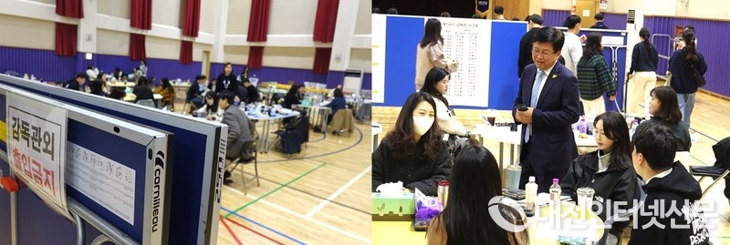 수험생들이 자신의 시험장을 확인하고 시험장에 입실하고 있다. [사진-대전인터넷신문]