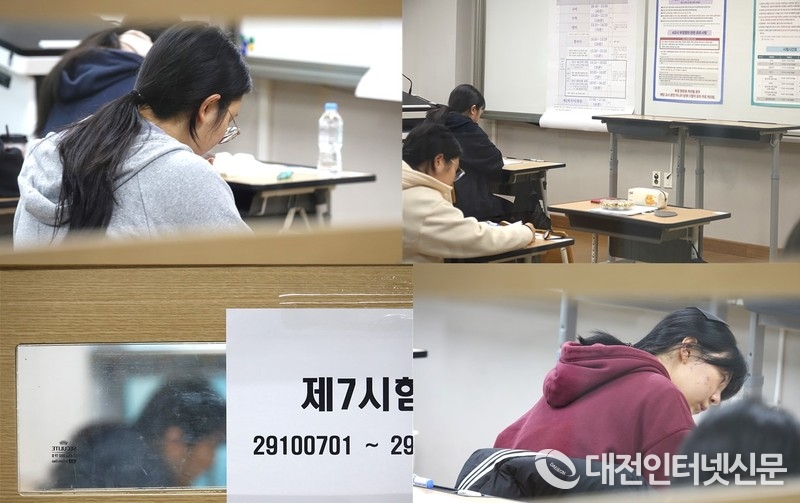 한 문제라도 더 맞추기 위한 단 일초도 낭비할 수 없다. 시험장에 앉아 마지막 복습에 열중인 수험생 여러분 화이팅! [사진-대전인터넷신문]
