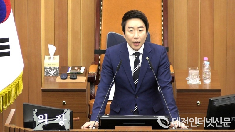 대통령 직무 정지에 따른 국가적 위기 대응을 통한 국정운영 정상화 촉구 결의안을 대표발의한 김현옥 의원이 결의문을 낭독하고 있다. [사진-대전인터넷신문]