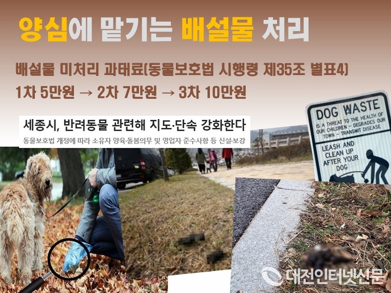 현행법상 반려동물의 배변 미처리시 발생하는 과태료 조항이 있음에도 불구하고 현장 단속 등은 여의치 않아 사실상 개인의 양심에 맡길 수밖에 없는 상황이다.
