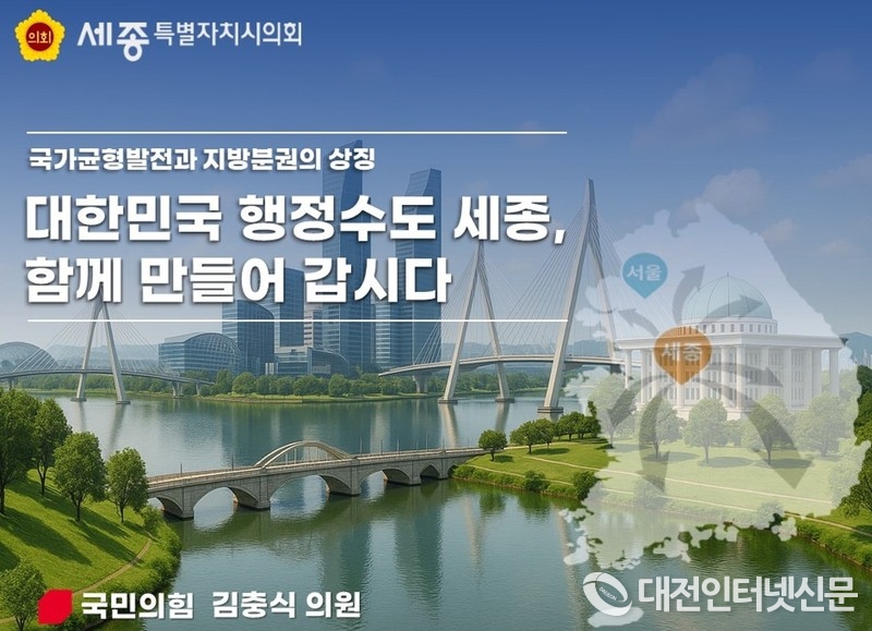 [대전인터넷신문=세종/권혁선 기자] 세종시의회 김충식 의원이 세종시의 행정수도 완성은 단순한 지역 현안이 아닌 국가적 책무임을 강조하며, 정치적 이해관계를 초월한 초당적 협력을 촉구했다.