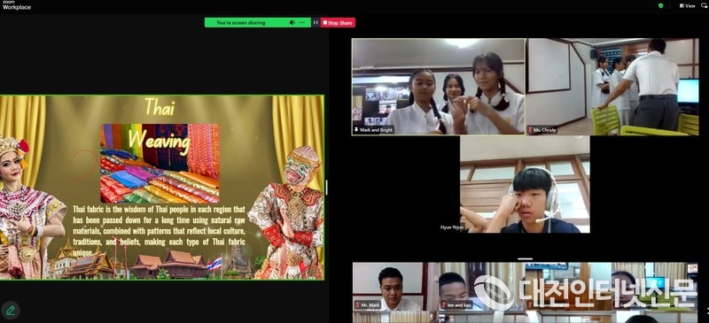 지난 7월 7일부터 해밀중에서 태국 학교와 전통 공예 중심의 국제문화교류가 진행되고 있다. [사진-세종시교육청]첫날과 이튿날에는 학생들이 Zoom을 통해 서로 인사를 나누고 자기소개를 하는 시간을 가졌으며, 각국의 전통 공예를 체험하고 완성된 작품을 사진으로 촬영해 공유하는 시간을 가졌다. 이후 학생들은 자신이 만든 공예품의 제작 과정과 의미를 영어로 발표하고, 서로의 작품을 감상하며 문화적 공감과 이해를 나누는 시간을 보냈다.