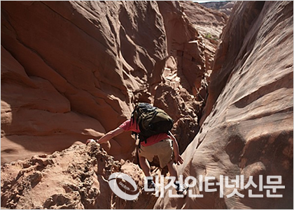 그는 미국 유타주 캐니언랜드 국립공원 근처에서