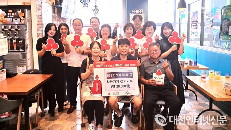 [대전인터넷신문=세종/권혁선 기자] 세종시 나성동지역사회보장협의체는 9일 BBQ나성점과 나성미술교습소가 착한가게 기부 협약을 체결하고 매월 정기적인 기부를 통해 지역 내 취약계층을 지원하기로 했다고 밝혔다.