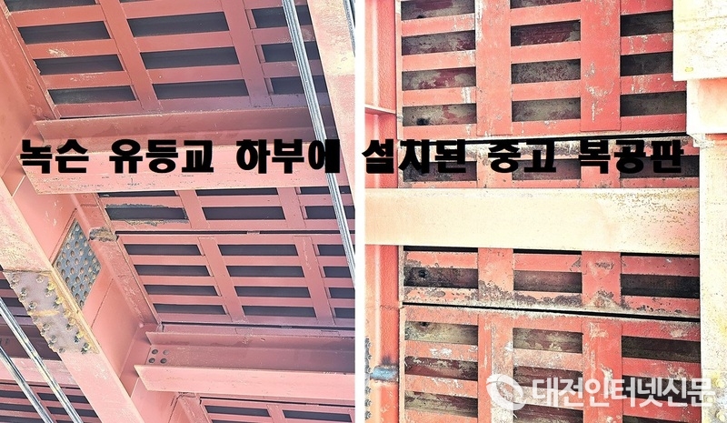 또한, 이 복공판은 수도권 지하철 9호선 6공구 현장에 납품됐던 중고 자재로 추정된다. 그럼에도 시공사 ㈜하이브리텍은 이를 ‘신품처럼 위조된 서류’로 제출했고, 대전시는 서류상 제조사와 생산이력조차 검증하지 않은 채 자재 사용을 승인했다. 장 의원은 “대전시가 ‘신품으로 새로 제작된 KS강재’라고 해명했지만, 실제 확인된 자재는 오래된 중고 비표준 강재였다”며 “시민의 발밑에 놓인 다리가 행정편의와 비용절감의 희생양이 된 것”이라고 강하게 비판했다.