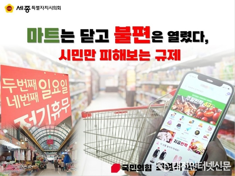 한편 최원석 의원의 발언은 단순한 유통 규제 완화 요구를 넘어, 세종시의 생활 패턴과 지역경제 현실에 맞는 정책 전환 필요성을 제기했다. 시민 불편을 해소하면서도 지역 상권과 상생할 수 있는 실질적 대안 마련이 시급하다는 지적이 설득력을 얻고 있다.