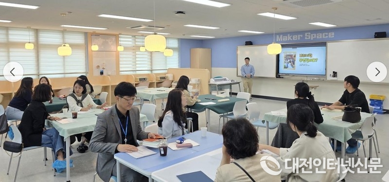 교사와 교육청 관계자들이 브리지 체험 프로그램을 통해 수업 운영법을 익히는 모습. [사진-세종시교육청]