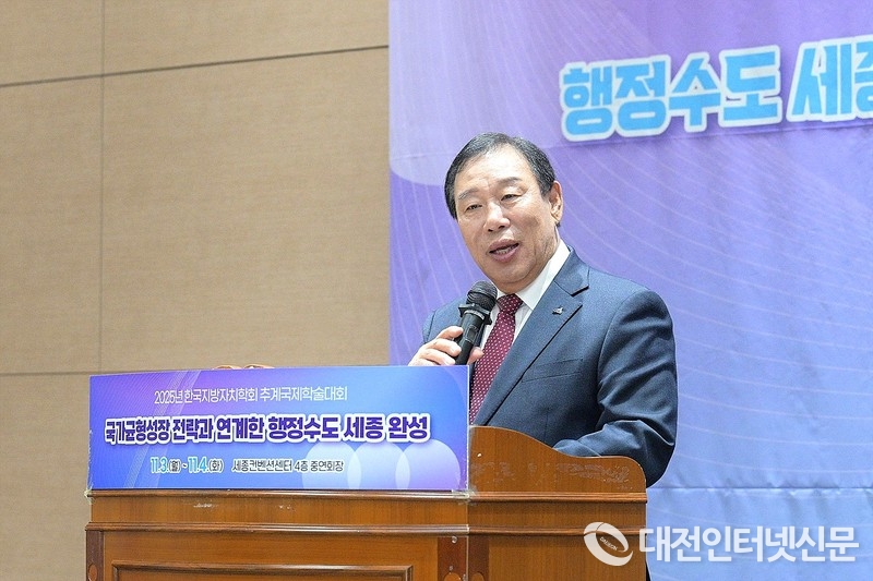 [대전인터넷신문=세종/최대열기자] 최민호 세종특별자치시장이 3일 정부세종컨벤션센터에서 열린 2025년 한국지방자치학회 추계국제학술대회에서 저출생, 지방소멸, 정치양극화 등 국가 위기를 극복할 유일한 해법이 ‘행정수도 세종 완성’이라며 개헌 명문화와 국회·대통령실의 완전 이전, 재정특례 확대를 강력히 요청했다. 임채성 세종시의회 의장도 “지방분권과 국가균형발전을 위해 행정수도 완성은 선택이 아닌 필수”라고 힘을 보탰다.