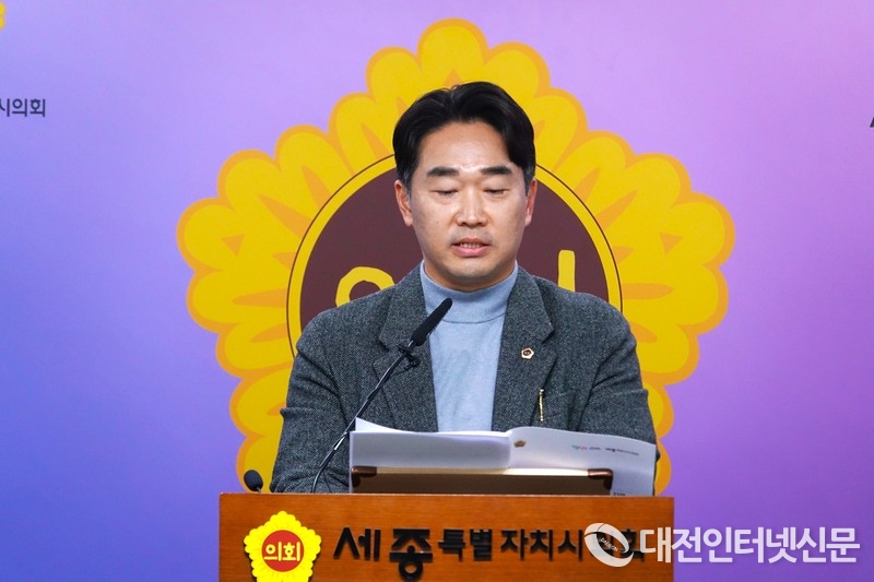 세종시의회 산업건설위원회 김재형 위원장이 10일 제102회 정례회 브리핑을 하고 있다. [사진-대전인터넷신문]
