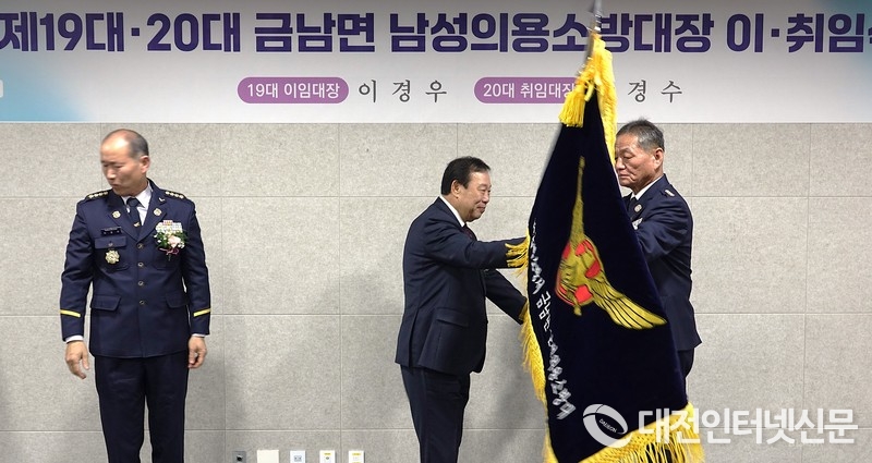 최민호 시장은 축사에서 “의용소방대는 행정의 손길이 닿기 어려운 순간마다 가장 먼저 현장에 나서는 지역 안전의 버팀목”이라며 “29년간 묵묵히 봉사해온 이경우 대장께 깊이 감사드리고, 장경수 신임 대장과 함께 금남면의 안전망이 한층 더 촘촘해지길 기대한다”고 말했다.