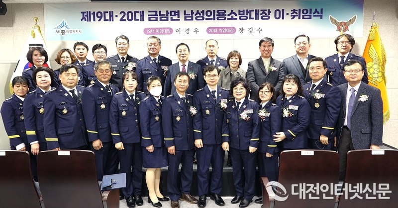[대전인터넷신문=세종/최대열기자] 세종시 금남면 의용소방대장 이취임식이 2026년 1월 9일 오후 4시 금남면행정복지센터 4층 대회의실에서 열려, 29년간 봉사해온 이경우 대장의 이임과 장경수 신임 대장의 취임을 축하하며 지역 안전의 새로운 출발을 알렸다.