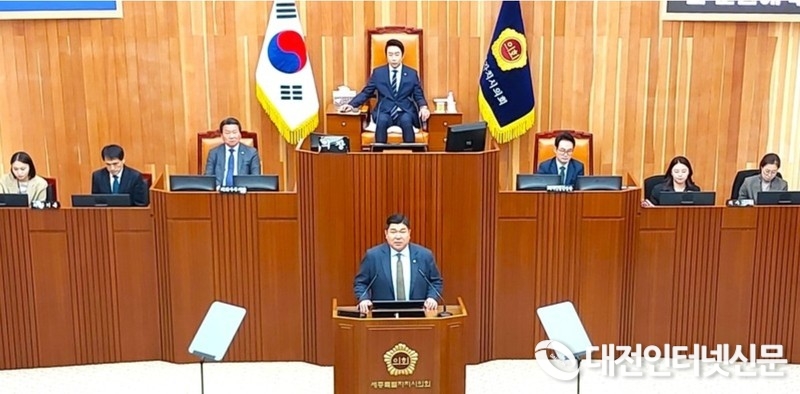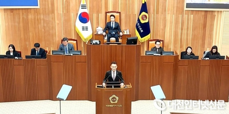 사진은 세종시의회 김재형 의원이 지난해 12월 15일 제102회 정례회 제4차 본회의에서 5분자유발언을 하고 있는 사진임. [사진-대전인터넷신문]