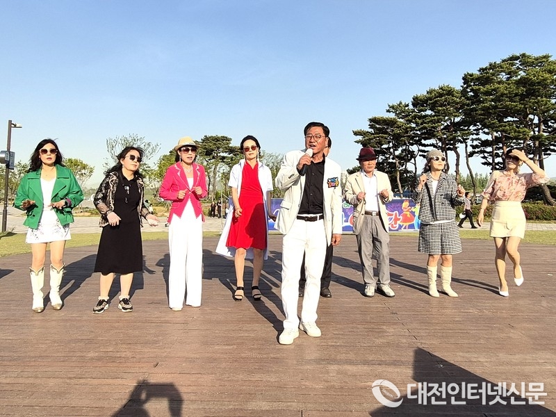 한밭꿈돌이 봉사단이 25일 세종호수공원 매화공연장에서 공연을..... [사진-대전인터넷신문 독자 제공]