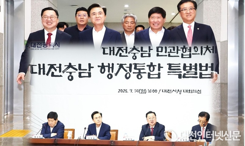 [대전인터넷신문=대전/최대열기자] 대전·충남 행정통합 민관협의체가 7월 14일 대전시청에서 제5차 회의를 열고, 총 296개 조항으로 구성된 ‘대전충남 특별시 설치 및 경제과학수도 조성을 위한 특별법(가칭)’ 최종안을 확정한 뒤, 양 시·도지사와 시도의회 의장에게 공식 제안하며 국회 입법 추진에 속도를 내고 있다.