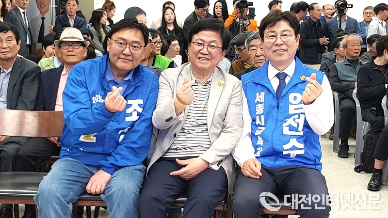 최교진 교육부 장관(가운데)이 지난 25일 세종시에서 열린 임전수 세종시교육감 예비후보 선거사무소 개소식에 참석해 관계자들과 기념촬영을 하고 있다. 이날 최 장관은 별도의 발언 없이 단순 참석한 것으로 본지 취재 결과 확인됐다. (사진=대전인터넷신문)최교진 교육부 장관의 개소식 참석과 관련해 강미애 세종시교육감 예비후보가 교육의 정치적 중립성 문제를 지적했다.