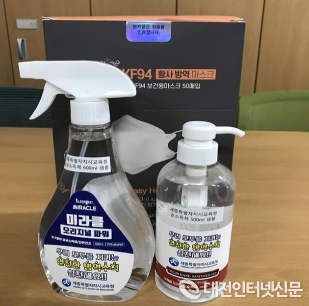 세종시교육청이 학원‧교습소에 마스크, 손소독제, 소독스프레이를 지원 한다.(사진-세종시교육청)