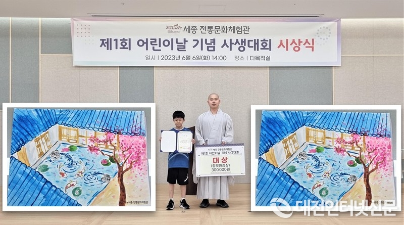 [대전인터넷신문=세종/최대열기자] 세종 전통문화체험관(관장 원묵스님)은 6월 6일(화) 오후 2시 세종 전통문화체험관 다목적실에서 제1회 세종 전통문화체험관 어린이날 기념 사생대회 “한옥의 봄향기” 시상식을 개최했다.
