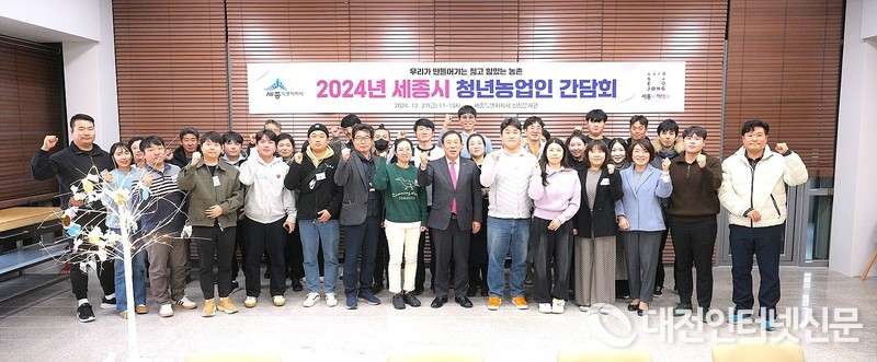[대전인터넷신문=세종/권혁선 기자] 최민호 세종시장이 27일 도담동 싱싱문화관에서 세종시 청년농업인 30여 명과 연말 간담회 자리를 갖고 청년농업인 맞춤형 지원 등에 대해 의견을 나눴다.