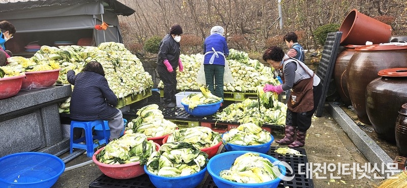 배추 1,300포기의 김장 속 넣기에만 5시간이 훌쩍.... [사진-대전인터넷신문]