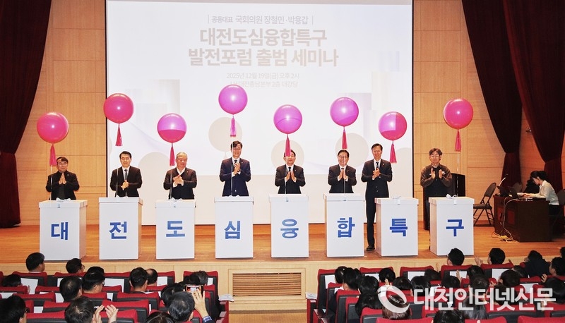 [대전인터넷신문=대전/최대열 기자] 대전도심융합특구 발전포럼(공동대표 장철민·박용갑)이 12월 19일 오후 LH 대전충남지역본부 2층 대강당에서 출범 세미나를 열고, 국회에서 마련된 도심융합특구 제도 정비 흐름을 대전 지역 현장 실행 단계로 구체화하는 첫 논의를 시작했다. 이날 행사에는 국회와 정부, 대전시를 비롯해 삼성글로벌리서치와 지역 공공기관·연구기관·대학·산업계·노동계 관계자들이 참석해 도심융합특구를 지역 성장 전략으로 구현하기 위한 협력 방안을 공유했다.