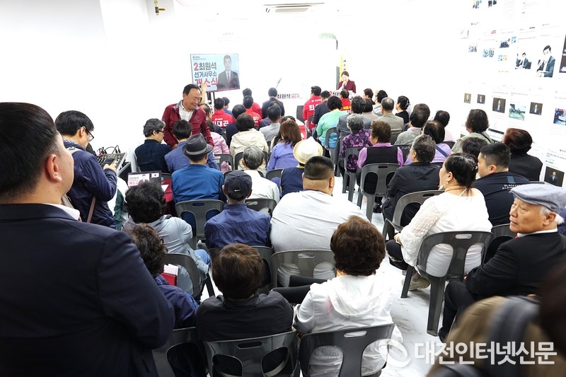 [대전인터넷신문=최대열기자] 최원석 후보가 19일 오후 2시 선거사무소에서 약 200여 명이 참석한 가운데 개소식을 열고 주요 정치권 인사들이 집결한 속에 복도까지 지지자가 몰리는 성황을 이루며 본격적인 선거운동에 돌입했다.