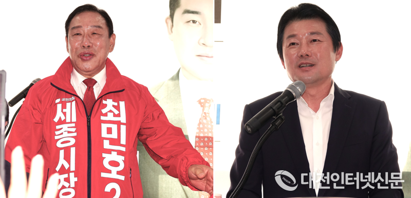 최원석 국민의힘 세종시의원 선거사무소 개소식에 참석한 최민호 후보와 이준배 시당위원장이.... [사진-대전인터넷신문]